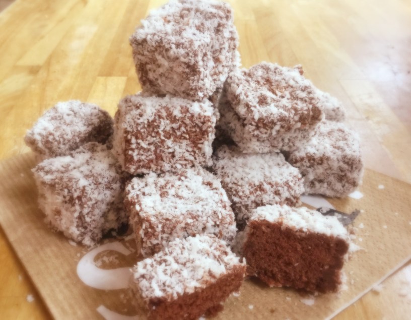 Die Kuvertüre im Wasserbad oder der Mikrowelle schmelzen. Kokosfett und Rum dazugeben und gut verrühren. Die Würfel werden nun mit einer Gabel in die Kuvertüre getunkt und anschließend in Kokosraspel gewälzt. Anschließend am besten einige Minute in den Kühlschrank stellen, damit die Kuvertüre schnell fest wird.