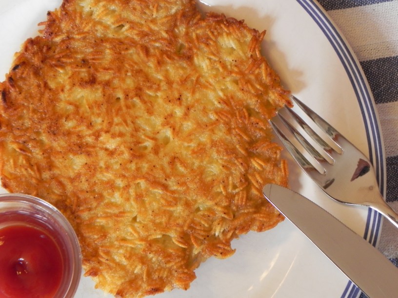 Ei mit Salz und Knoblauchpulver versprudeln und über den Reis gießen. Gut verrühren und in der Pfanne in etwas Öl goldbraun backen.