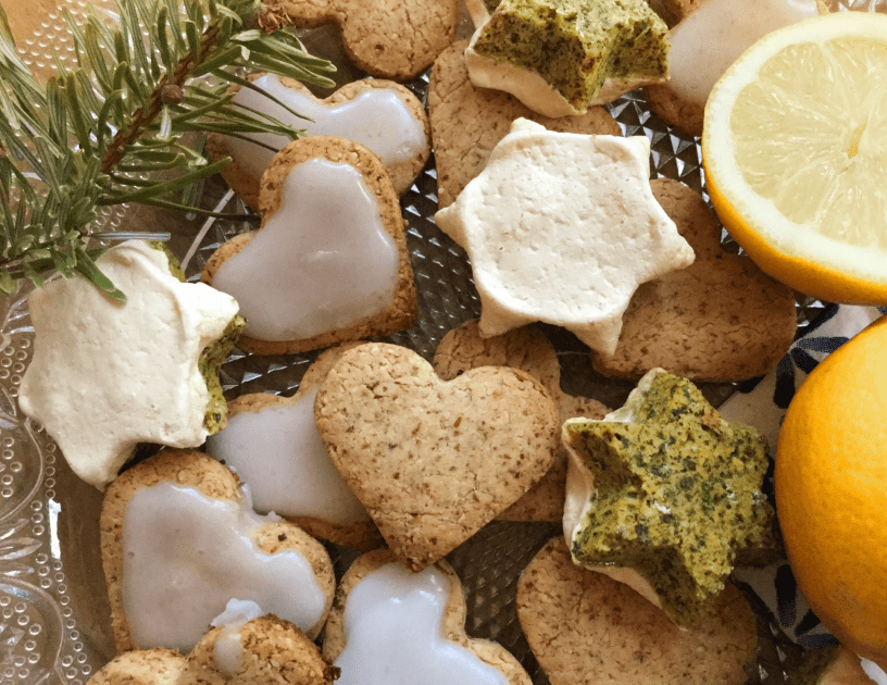 Das Eigelb mit dem Staubzucker und dem Vanillezucker cremig mixen. Dann Zitronenöl und Backpulver unterrühren und die Nüsse dazu mengen bis ein fester ausrollbarer Teig entsteht. Die Menge der Nüsse ist abhängig von der Größe der Eier und davon, ob die Nüsse sehr frisch sind. Den Teig auf einer glatten, mit geriebenen Nüssen bestreuten Fläche ½ cm dick ausrollen und Herzen ausstechen. Auf einem mit Backpapier ausgelegten Backblech bei 180°C ca. 10 min. backen. Den Staubzucker mit Zitronensaft glattrühren (nicht zu dünn) und die noch warmen Herzen damit bestreichen.