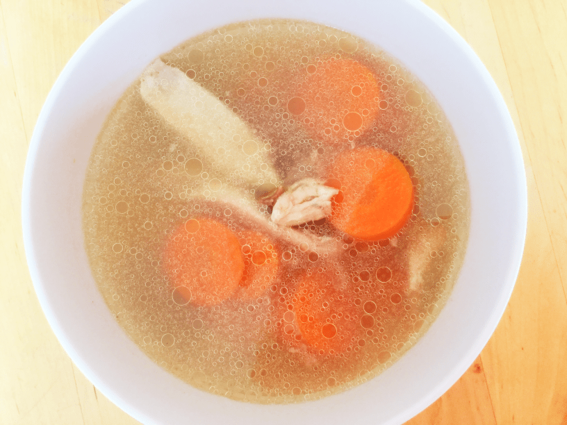 Schmeckt mit Suppennudeln, Grießnockerln, Biskuitschöberl, Frittaten oder auch ganz ohne Einlage.