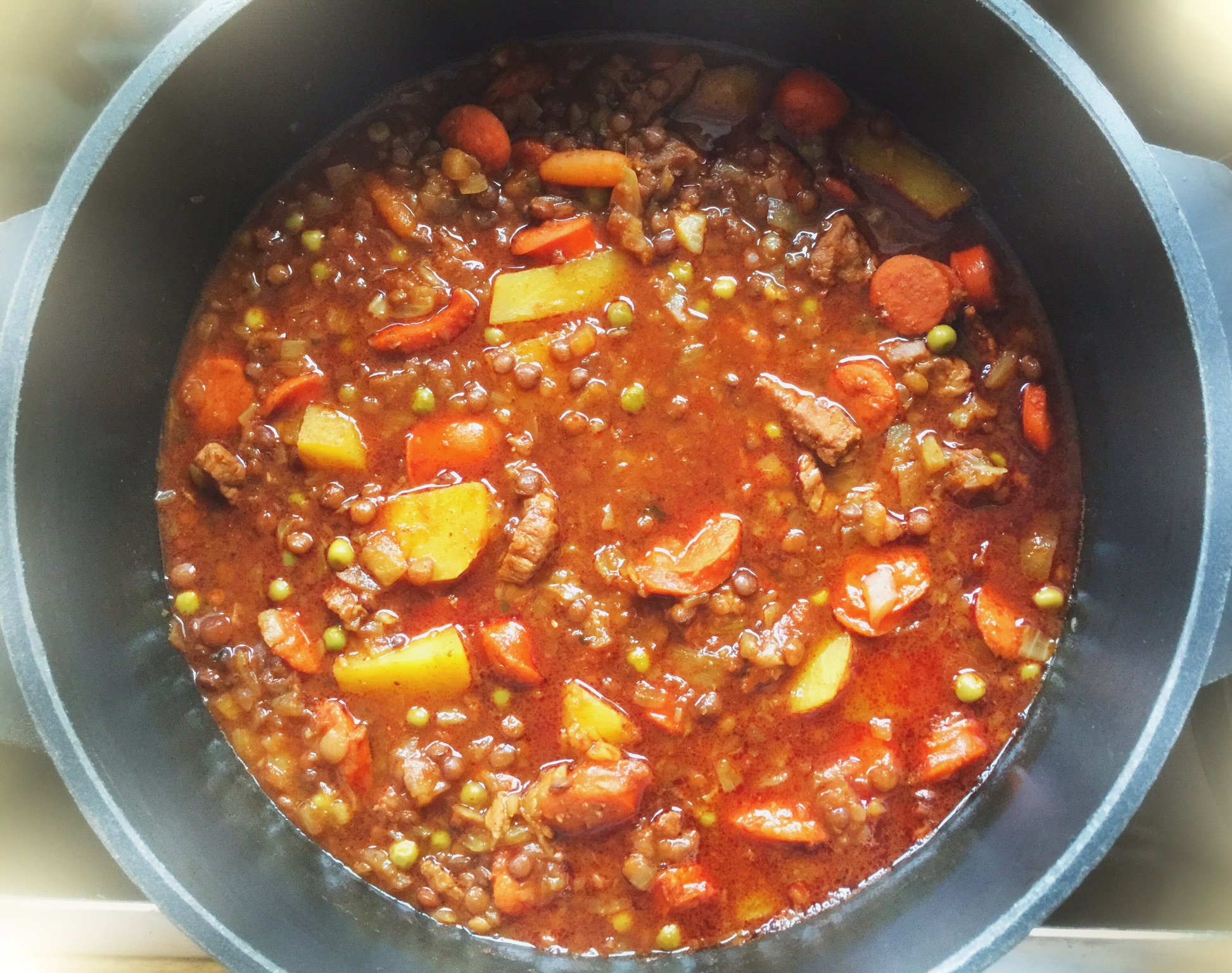 Zwiebel klein schneiden und in etwas Öl anrösten. Das Gulaschfleisch dazugeben, kurz anbraten und mit Paprika und Salz würzen. Das Wasser drüber gießen und zugedeckt mind. 30 min kochen. Im Druckkochtopf geht es natürlich viel schneller. Die Würstchen in dünne Scheiben schneiden, die Kartoffel würfeln und zusammen mit den Linsen dazugeben. Alles zusammen weitere 20 bis 30 min. kochen bis die Kartoffeln weich sind.
