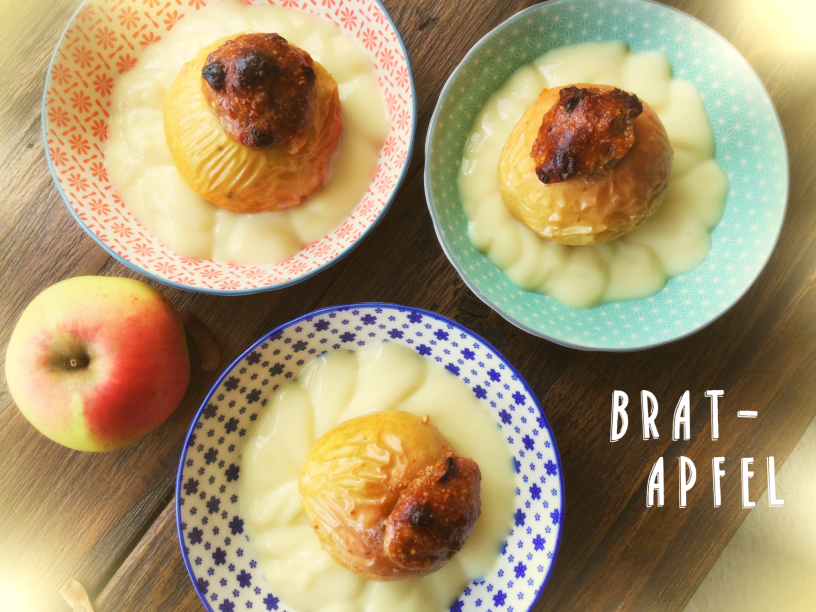 Noch besser schmeckt der Bratapfel mit Vanillesauce, die man ganz einfach mit Vanillepuddingpulver und Mandelmilch herstellen kann.