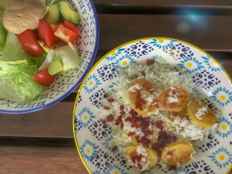 Die Berberitzen waschen und in etwas Wasser einige Minuten quellen lassen. In etwas Olivenöl kurz anraten und vor dem Servieren auf den Reis legen.