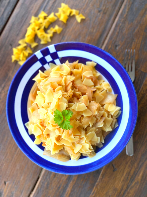glutenfreie Fleckerl (als Fleckerl wird die typische traditionelle Nudelform für dieses Gericht bezeichnet. Wer keine „Fleckerl“ zur Hand hat, kann alternativ auch Bandnudeln oder Spiraline verwenden)
