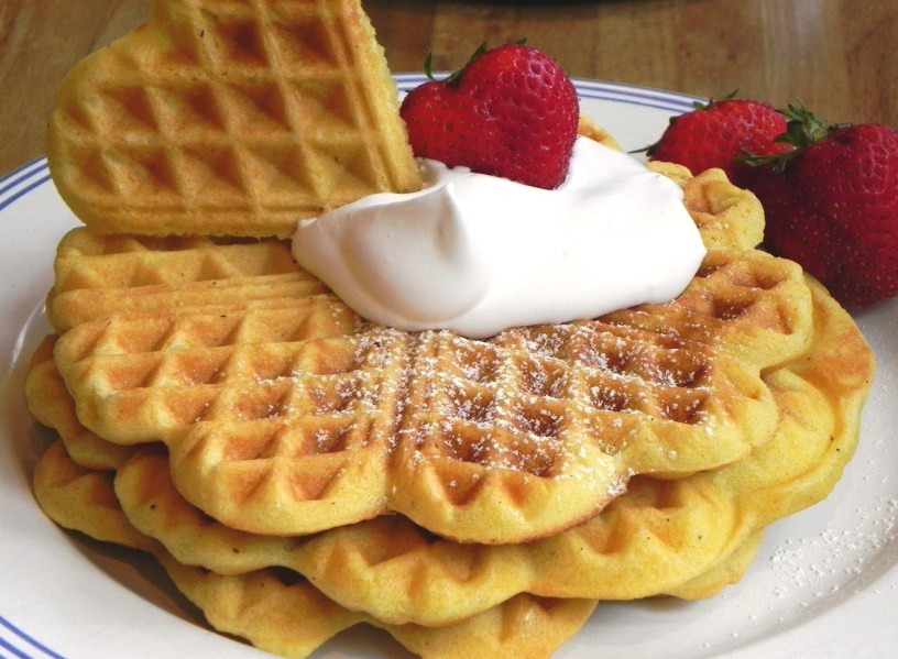 Waffeleisen vorheizen, leicht einfetten und die Waffeln goldbraun backen.