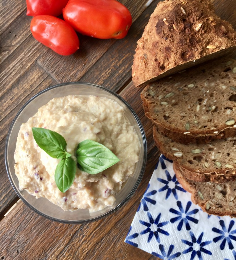 Entweder alle Zutaten sehr fein schneiden und vermischen oder alles zusammen in der Küchenmaschine klein hacken. Der Aufstrich wird umso cremiger, umso feiner die Zutaten geschnitten sind. Im Kühlschrank kalt stellen.