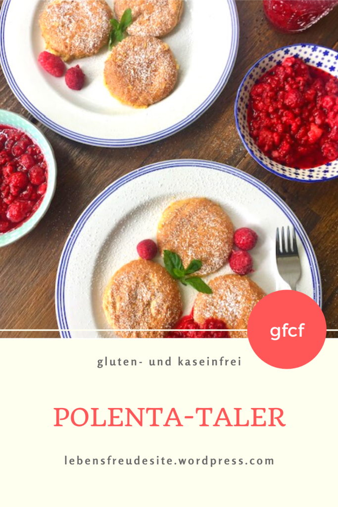 Himbeeren mit Zucker und Vanille erhitzen und zu den Polenta-Talern essen. Wer die kleinen Kerne der Himbeeren nicht mag, kann die fertig gekochte Himbeermasse fein pürieren.