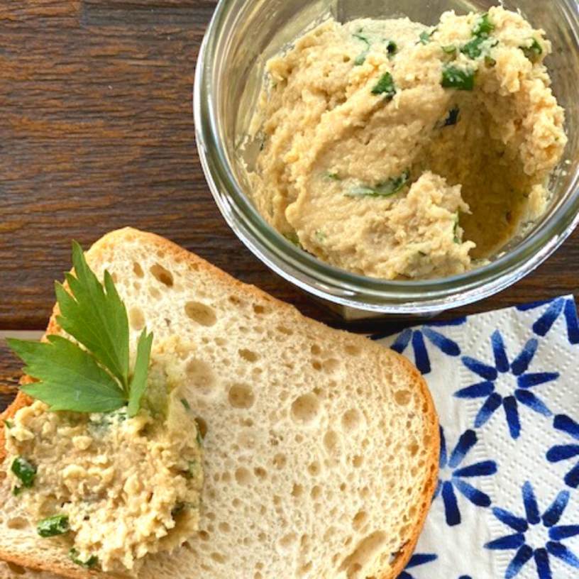 Am nächsten Tag Wasser abgießen und alle Zutaten, bis auf die Kräuter, in einem Mixer fein pürieren.