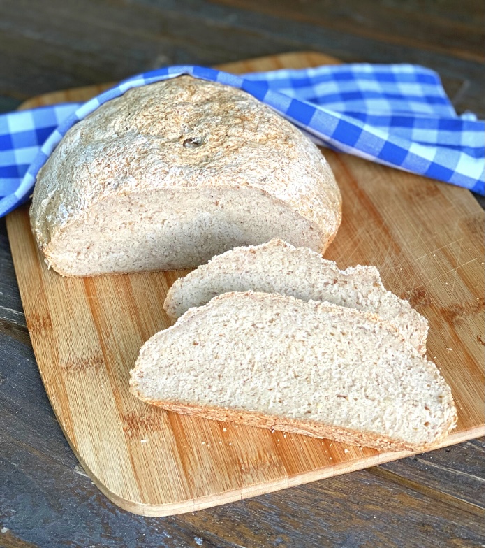 Alle trockenen Zutaten gut vermischen. Dann mit den flüssigen Zutaten zu einem Teig verkneten. Auf einer bemehlten Arbeitsfläche den Teig kneten und falten. Entweder in eine Backform nach Wahl (z.B. gusseisernen Topf) geben oder ohne Backform auf einem Backblech eine Stunde gehen lassen.
